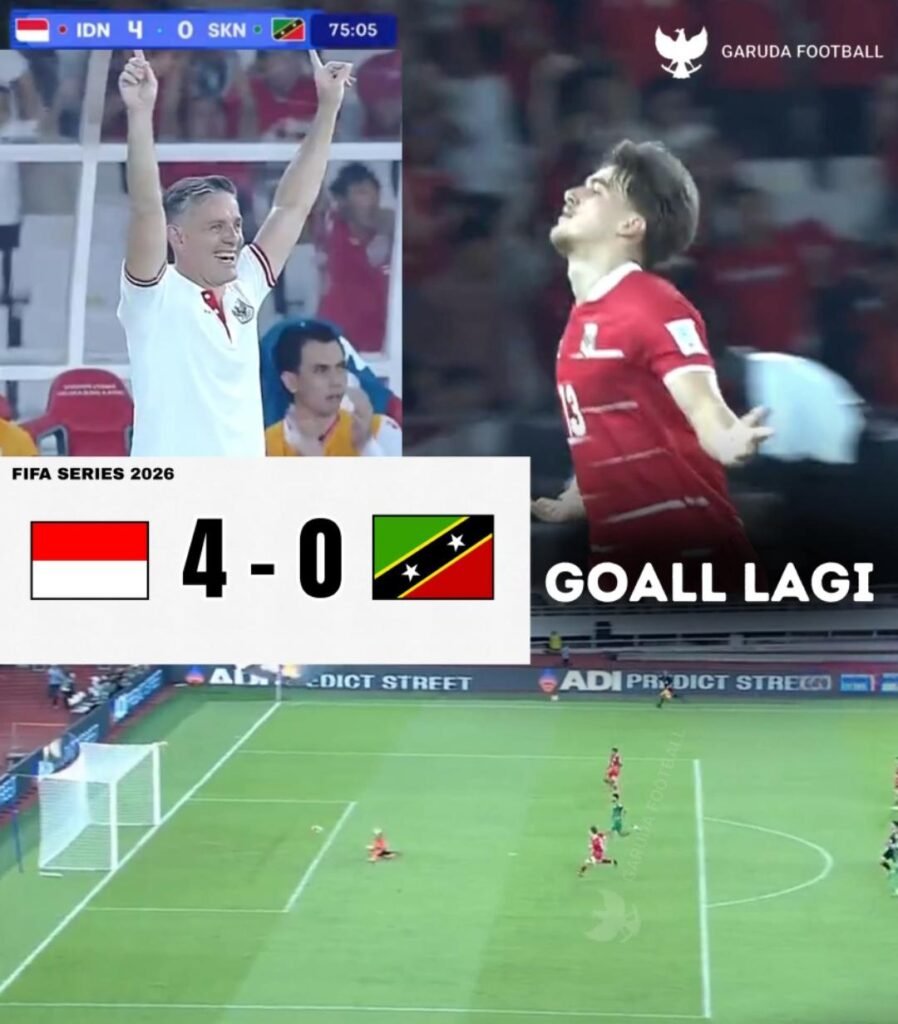 Jakarta – GINEWS TV INVESTIGASI, Tim nasional Indonesia meraih kemenangan meyakinkan dengan skor 4-0 saat menghadapi Saint Kitts dalam laga internasional FIFA Series.