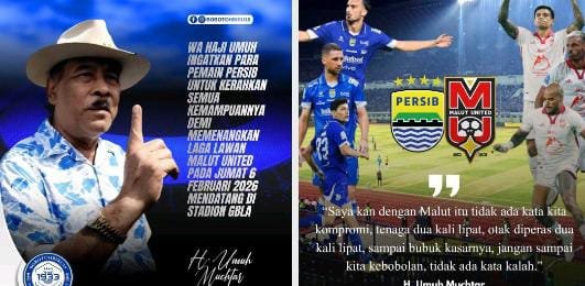 Komisaris PT Persib Bandung Bermartabat, Umuh Muchtar, memberi motivasi langsung kepada para pemain Persib jelang laga melawan Malut United. Ia menegaskan tak ingin Maung Bandung kehilangan poin pada pertandingan tersebut.